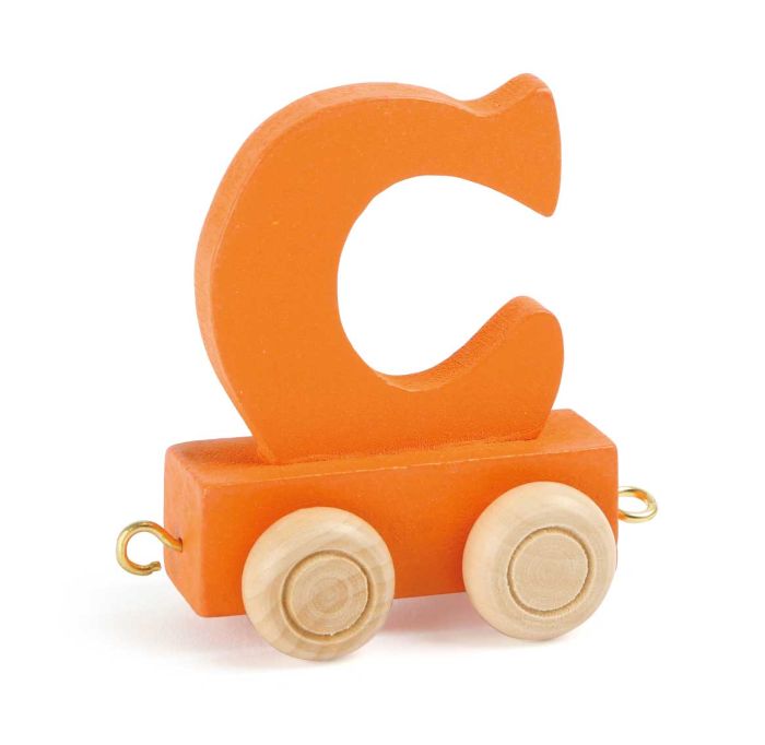 Dieser Holzanhänger mit dem orangenen Buchstaben C kann an jeden Namenszug gehängt werden.