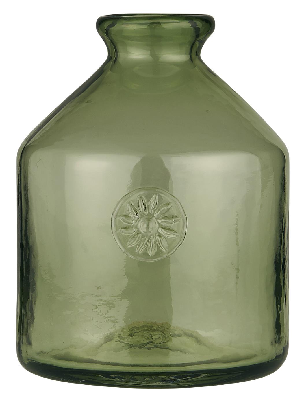 IB Laursen Glasflasche m/Blumenemblem grünes Glas NON FOOD mundgeblasen